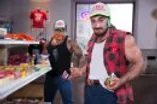 Muscular Jaxton and Lorenzo fuck at the convenience store