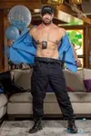 Beau Butler fucked in threesome & jizzed on by seven studs.