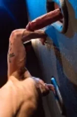 Horny Chris sucks on Johnny's big cock in a glory hole.