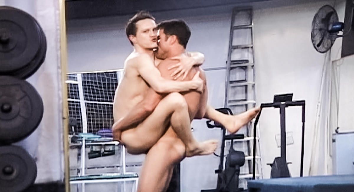 Seth Williamson is doing very thorough stretching out at the gym, onethat seems more aimed at catching a playmate rather than avoidingmuscle strain later. In any case, it does nab hunky Aaron Richards,who helps Seth's flexibility by bending him in ways that make Seth'suncut cock and rosy pucker more available to his hands, mouth andcock. The fuck sequence is even more impressive (and thorough),with Aaron burying his cock into Seth missionary, from underneath,and most awesomely, holding the smaller dude aloft while he fuckshim from behind.