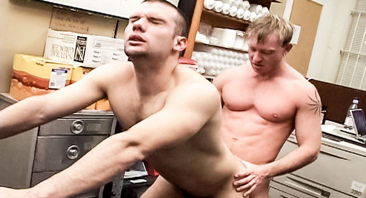 As Remy Delaine is browsing the shelves, Brendan Austen walks byand ever-so-slightly grazes Remy's bubble-butt. Seconds later, thetwo are lip-locked without speaking a word. Remy is the first to dropto his knees, downing Brendan's juicy cock to the root, and soon afterBrendan is following suit, although Remy's thick piece isn't an easyone to swallow whole. When Brendan sticks his tongue betweenRemy's furry ass cleft, Remy purrs like a panther, and Brendanreplaces his tongue with his cock in short order. But the fuckingreaches a fever pitch when Brendan bends over for Remy's fat pole,and the careful, slow initial penetration alone is orgasm-worthy, not tomention the high-energy thrusting. When Remy reaches the brinkfrom tearing up Brendan's hole, he falls on his back and watches asBrendan strokes out a big load, and then he unleashes a creamy loadthat clings to his foreskin-covered cockhead.