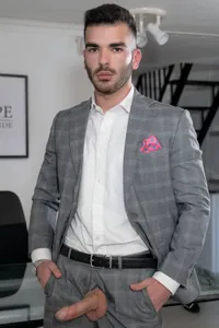 New York real estate agent Drew Valentino has flown all the way to Torremolinos to interview for his desired job, and he knows that, in order to secure the position, he's going to have to get into a few select positions himself. During his sit-down with HR honcho Pol Prince, he lets the interviewer's dress shoes give him a foot job until Pol is so horny that he's crawling under his own desk to suck off the big dick that's popping out of Drew's dress pants. Drew, still on a mission to guarantee his spot at the company, shows off his true A-game as he blows, rims and barebacks Pol until the business stud's face is smashed up against the glass of his own desk. With both men aching for more, the interview turns into a flip-fuck as Pol pulls down Drew's pants and takes the realtor from behind. Then, with Drew on his back and Pol worshipping Drew's feet, Pol begins licking up the fresh nut that Drew just shot all over his tie before pulling out to unload his fat cock into Drew's open mouth.