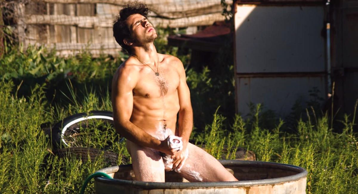 Jimmy (Tripps) gets dirty from fixing an old, oily generator. He decides to come clean by taking a bath in a galvanized tub out in the ranch junkyard. He takes off his clothes under the beautiful western sky and begins to stroke his long, veiny cock. He strokes away, working his monster dick to full attention. Jimmy climbs out of the tub to sit on the edge and stroke blowing a load all over the ground. Jimmy gets back into the tub to relax and rinse off when a figure steps into frame. A shot rings out as Jimmy takes a load in the balls. Startled and in overwhelming pain, Jimmy looks up and is hit with a second shot right between the eyes. Tanner hears the shots from the barn and runs to aid another of his own. It's too late, as Jimmy's lifeless body lies limp.